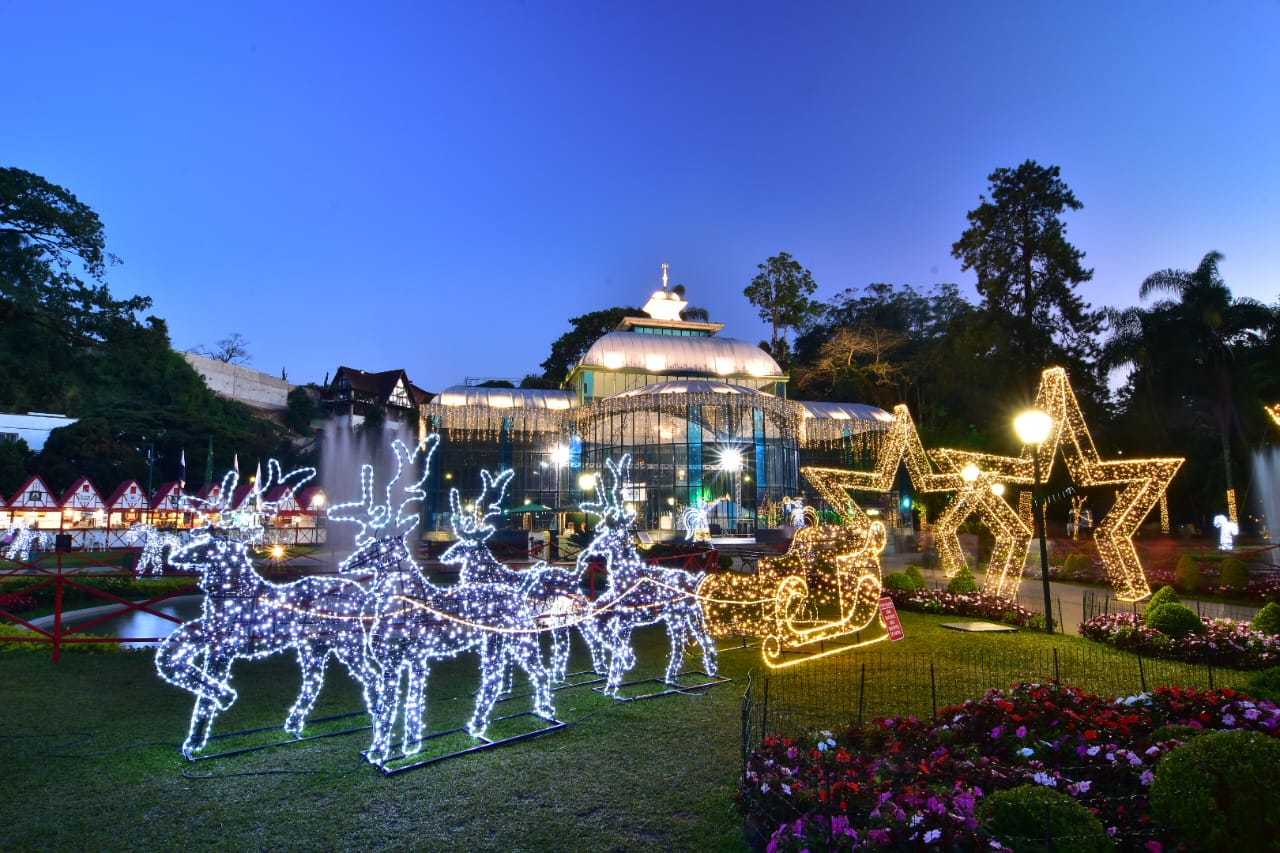 Durante todo o mês de dezembro, a Cidade Imperial se transforma em um verdadeiro conto de fadas, com ruas iluminadas, corais, desfiles temáticos, neve artificial e apresentações no charmoso Palácio de Cristal.