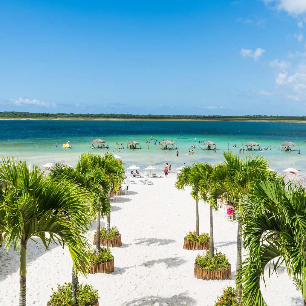 Piscina natural de águas azul-turquesa, perfeita para banho e fotos únicas.Duna do Pôr do Sol